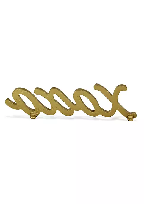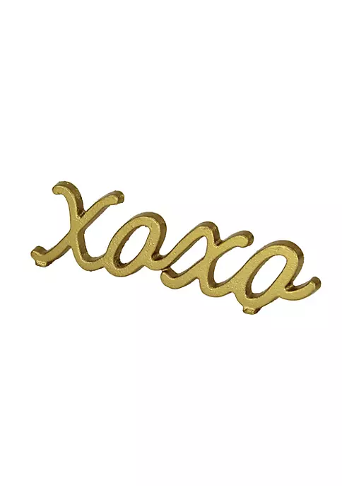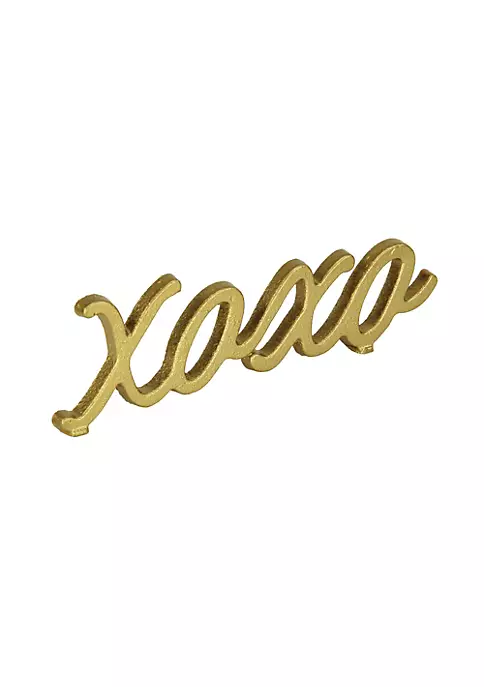 Accent your home and space with a wonderful stylish accent piece. From shelves to dining tables, entryways to bedrooms, smaller decor pieces have found their way into spaces that need a finishing touch of flair or design. Featuring a golden, cast iron design forming the script “XOXO” in cursive, this piece will be an eye-catching addition to any room it is in. An entirely handmade and hand crafted design. Fully assembled and ready for use, simply unbox and display! Made from cast iron materials. Features a cursive “xoxo” lettering Incorporates a gold painted cast iron finish Primary Color: Gold. Product Dimensions: W: 10″ x D: 0.5″ x H: 3″Product Weight: 0.75lbs Assembly Required: No. Primary Material: Cast Iron. Country of Origin: China
