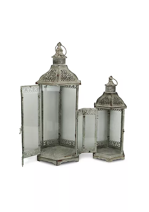 Cheung’s Contemporary Metal Nesting Tables with Curved Repeating Pattern and Top Mirror, Set of 2