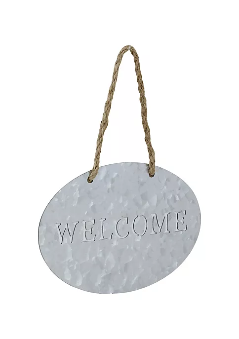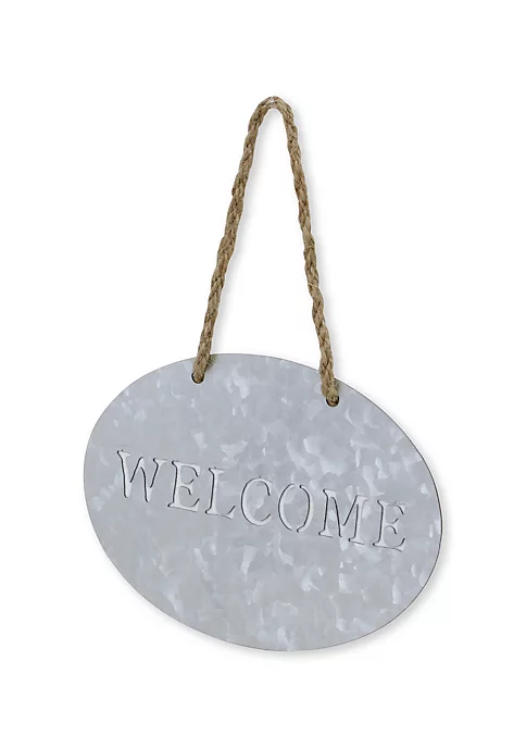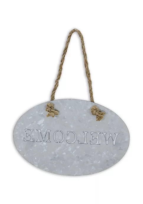 Metal garden hanging”welcome” sign. Product Dimension: 11 x 4.5 x 0.5. Material Rope, Metal. Attached hanging rope. Welcome Design Cutout.