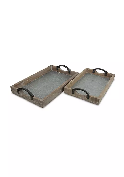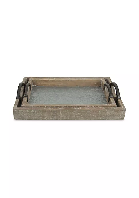 Cheung’s Wood Frame Tray with Galvanized Base and Cast Iron Handles – Set of 2