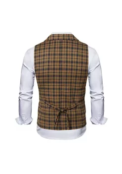YAOQIANSHU Mens Plaid Formal Waistcoat Peak Lapel Double Breasted Casual Suit Vests For Business Work Party Wedding Dinner (Brown)
