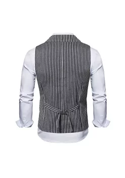 YAOQIANSHU Mens Vertical Striped Waistcoat Peak Lapel Suit Vests for Formal Occasions Business Work Party Wedding Dance Dinner