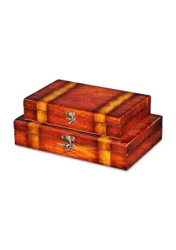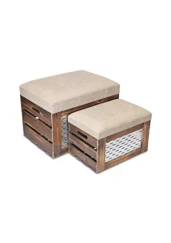 Cheung’s Contemporary Square Wood Slat Storage Bench with Metal Accents and Cushioned Lid, Set of 2