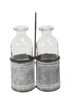 Cheung’s Home Indoor Decorative 2 Slot Galvanized Metal Jar Holder – Medium