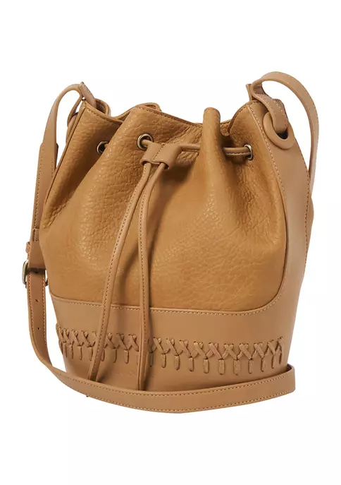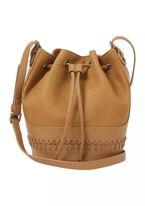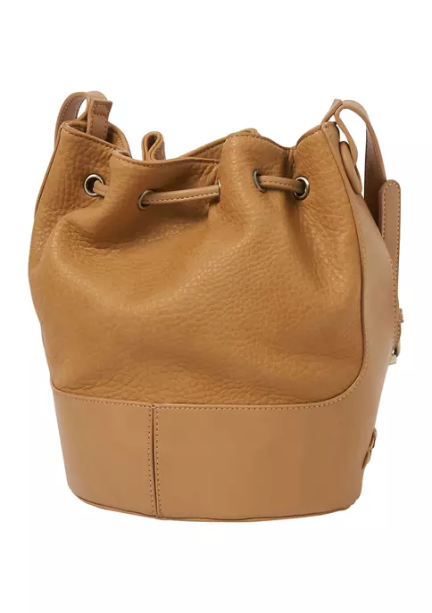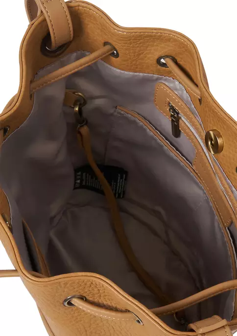 The Collective is a very practical bucket bag made in a combination of pebbled and soft vegan leather. It features an adjustable strap and an adjustable closure.