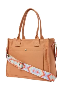 The Truly Divine by Urban Originals is a large soft and light canvas tote complemented with matching and fun webbing handles across the body and trimmed with smooth vegan leather. This bag comes in various colors.
