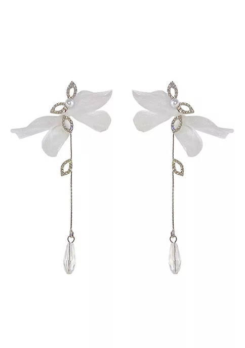 Butterfly Wing Earrings, Chiffon Fabric Earrings Flower Petals Long Earrings