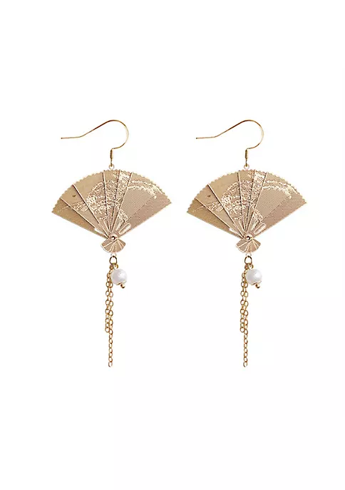 Chinese Style Foldable Fan Earrings Pearl Retro Dangle Earring Tassel Earrings for Women Girls
