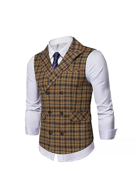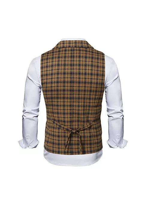 Vest Design: Classic brown checked business tank top with a V neck, double breasted button closure and a slim fit.Occasion: This blazer suit is suitable for formal or informal occasions; such as business, wedding receptions, dates, work, parties or everyday wear, it is suitable for all seasons and can be paired with shirts, jackets, suits or tuxedos to make you a handsome gentleman and enhance your image.Best Gift: The vest can also be a gift for friends, family, colleagues, Father’s Day, Valentine’s Day, Christmas, Halloween, Graduation, Wedding Anniversary, Thanksgiving, or anyone you care about.Size:Please check the size chart carefully and choose the size that suits you.