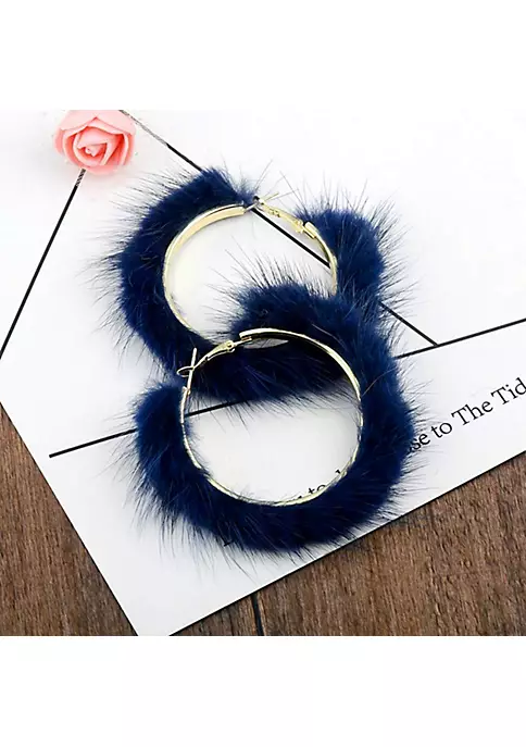 Popular Plush Large Circle Earrings Exaggerated Atmosphere Girl Heart Mink Hair Earrings