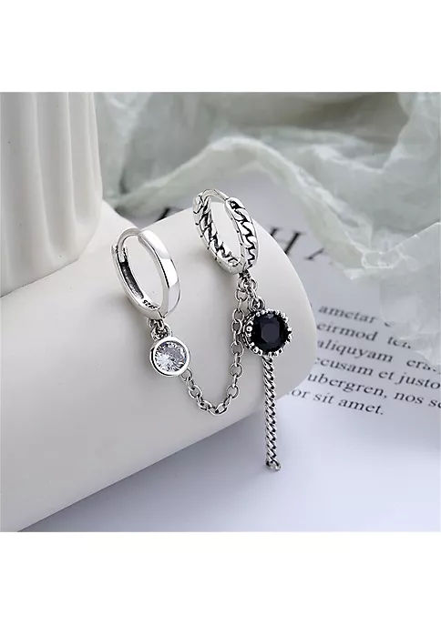 925 Sterling Silver Two Zircons Stud Earrings Double Hoop Studs Chain Tassel Piercing Earrings